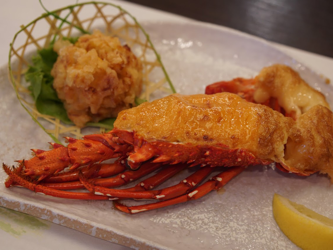 次は伊勢海老。せんざんオリジナルのソースが美味しいです。